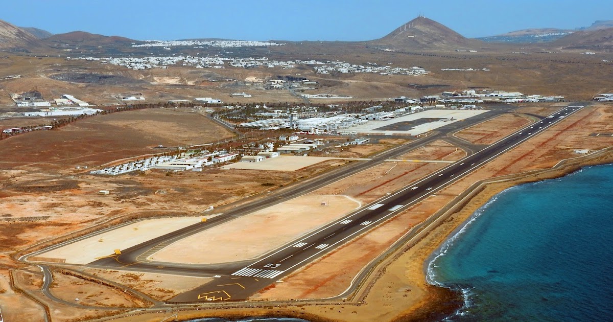 Aeropuerto de Lanzarote. Vista aérea general del aeropuerto de Lanzarote, Islas Canarias.