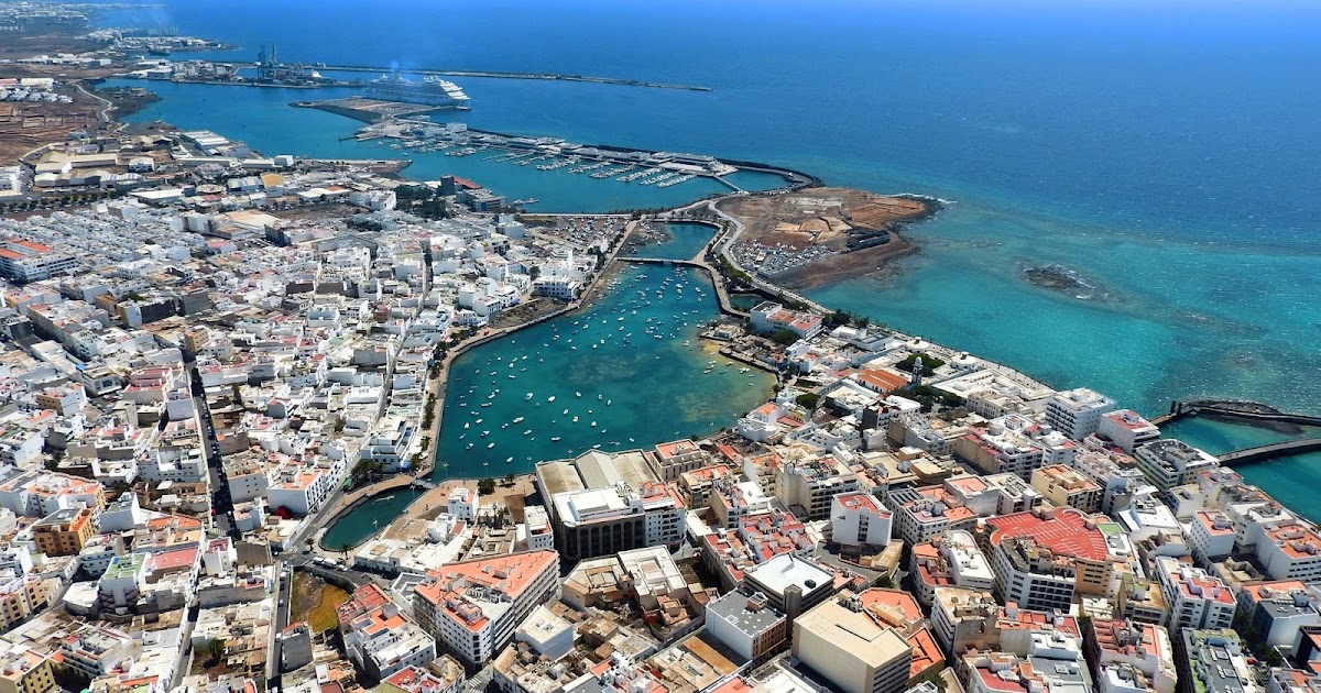 Arrecife - Lanzarote Fotografía aérea de la capital conejera, Arrecife de Lanzarote, con la playa del reducto en primer plano.
